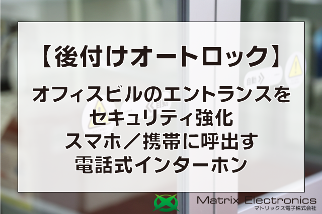 【後付けオートロック】オフィスビルのエントランスをセキュリティ強化|スマホ/携帯に呼出す電話式インターホン